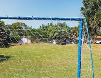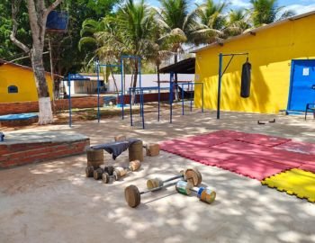 Ambiente externo com estrutura para atividades físicas e momentos de integração.